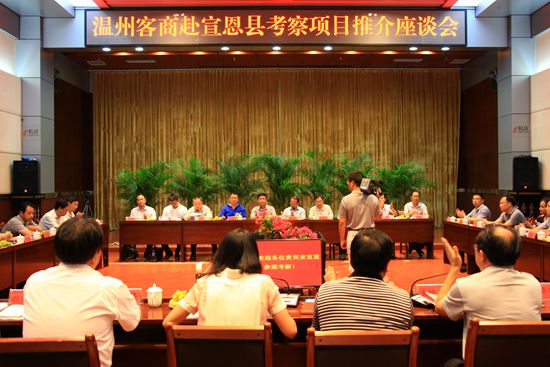 11日温商考察团在州企联会长王坤元、监事会主席张龙光的陪同下,先后深入到宣恩县椒园生态产业园、和平产业制造园、宣南产业园,对宣恩县“一园三区”建设和投资情况进行实地考察。宣恩县县委书记曾德权陪同考察,县长习覃出席项目推介座谈会。会上,宣恩县委常委、常务副县长朱鹏程代表宣恩县政府与温商投资集团签订了投资意向性协议。