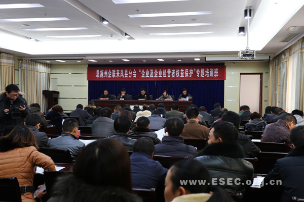 2013年12月27日,恩施州企联法律维权中心在来凤县国税局11楼会议室开展法律知识培训。州企联副会长彭代富、州企联来凤县分会名誉会长、来凤县副县长杨斌出席会议并讲话,会议由来凤县政协副主席、工商联主席向莉主持,州企联法律维权中心李清安主任、沈永胜律师主讲。来凤县乡镇及县直相关部门分管领导,50家规模以上企业、32家商贸建筑企业负责人,工商银行、邮储银行、村镇银行负责人,共140余人参加培训。