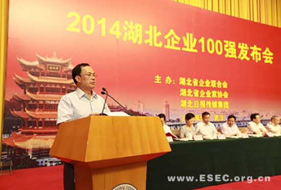 现在,我代表湖北省企业联合会/企业家协会/工业经济协会和湖北日报传媒集团,对2014湖北企业100强的排序,予以发布。