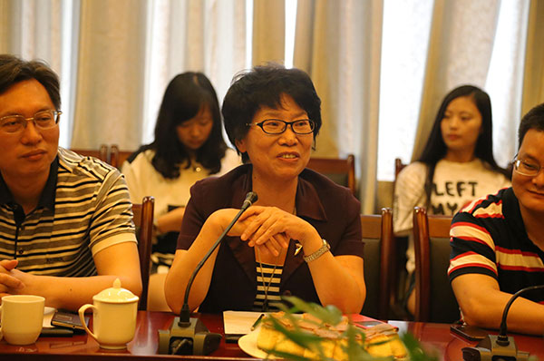 百强班班主任、华中科技大学高培中心副主任邓红丽在座谈会上讲话。