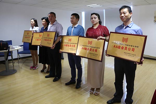 7月28日下午,州民政局副局长张平、州企联副会长彭代富和州保险行业协会会长、秘书长分别给天安财险、大地财险、人保财险、生命人寿、人民人寿、太保人寿等6家恩施分(中支)公司颁发了“2014年度州保险公司综合量化考核A级会员”奖牌。其中,天安财险、大地财险、人保财险、生命人寿4家保险公司连续两年入围A级获得“AA级会员”荣誉称号。
