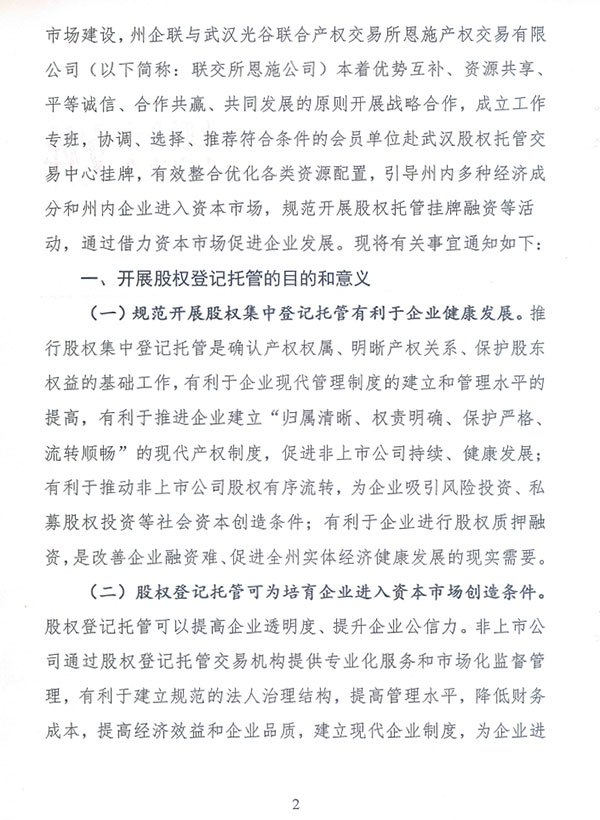 恩施州企联关于股权托管挂牌融资通知