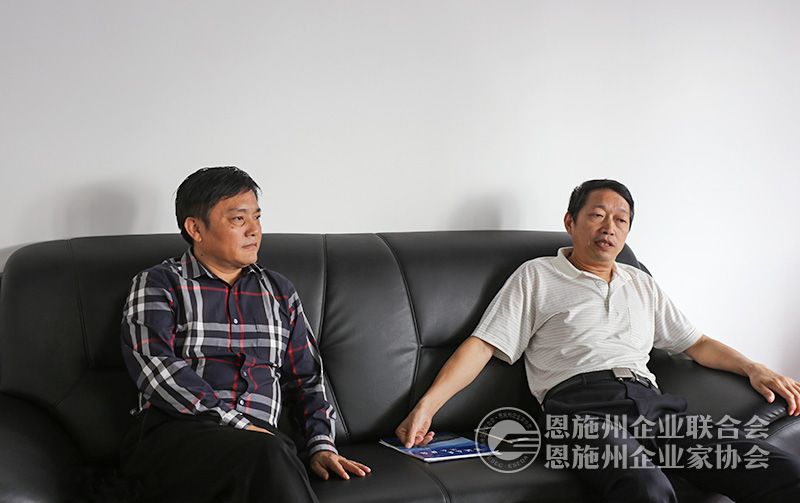 恩施州经信委主任李波林(右)调研州企联