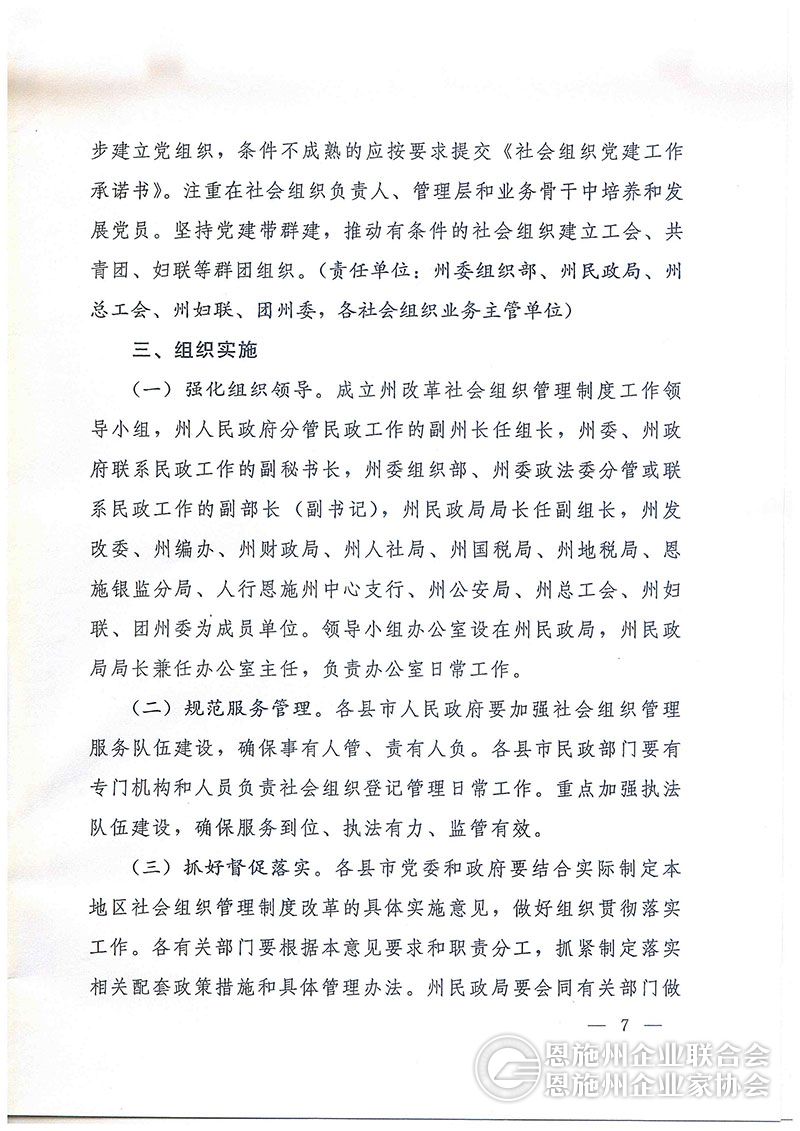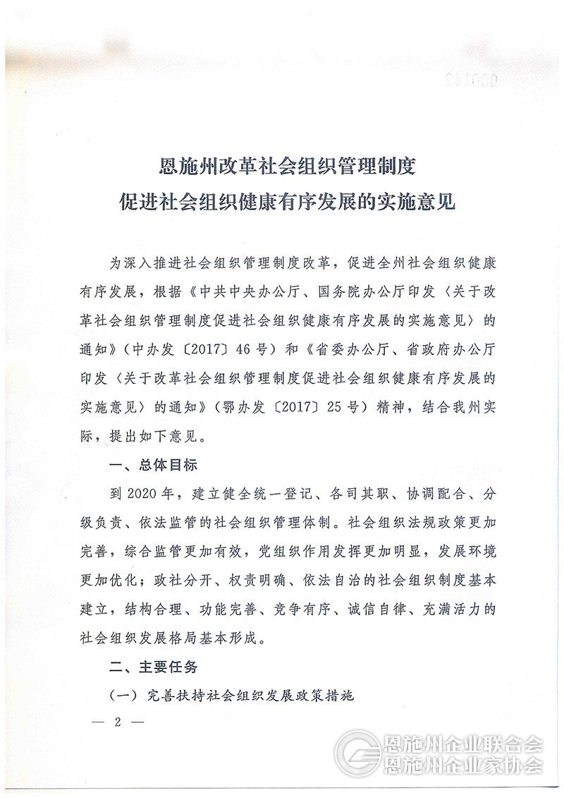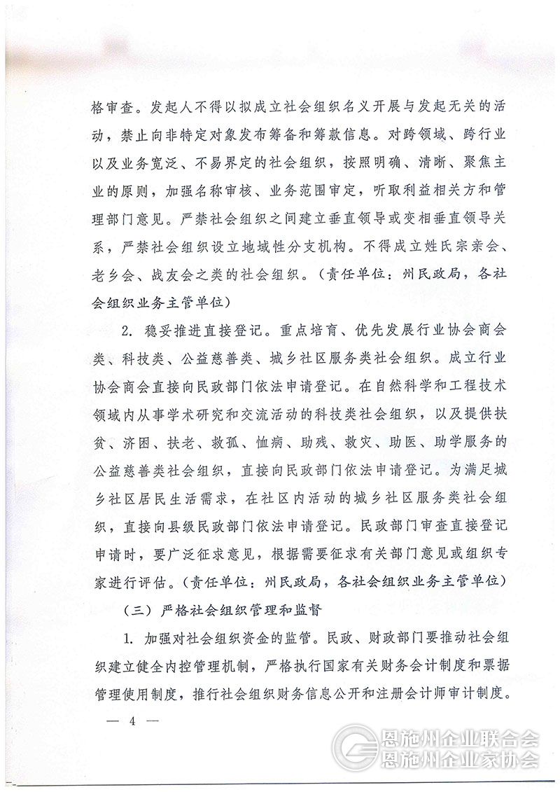 恩施州改革社会组织管理制度促进社会组织健康有序发展的实施意见