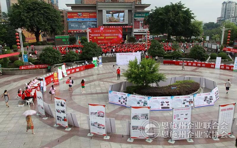 图片3: 州保险行业协会组织33家保险公司从业人员开展“7.8全国保险公众宣传日”暨“无偿献血活动宣传月”大型广场活动。并进行保险业扶贫图片展。
