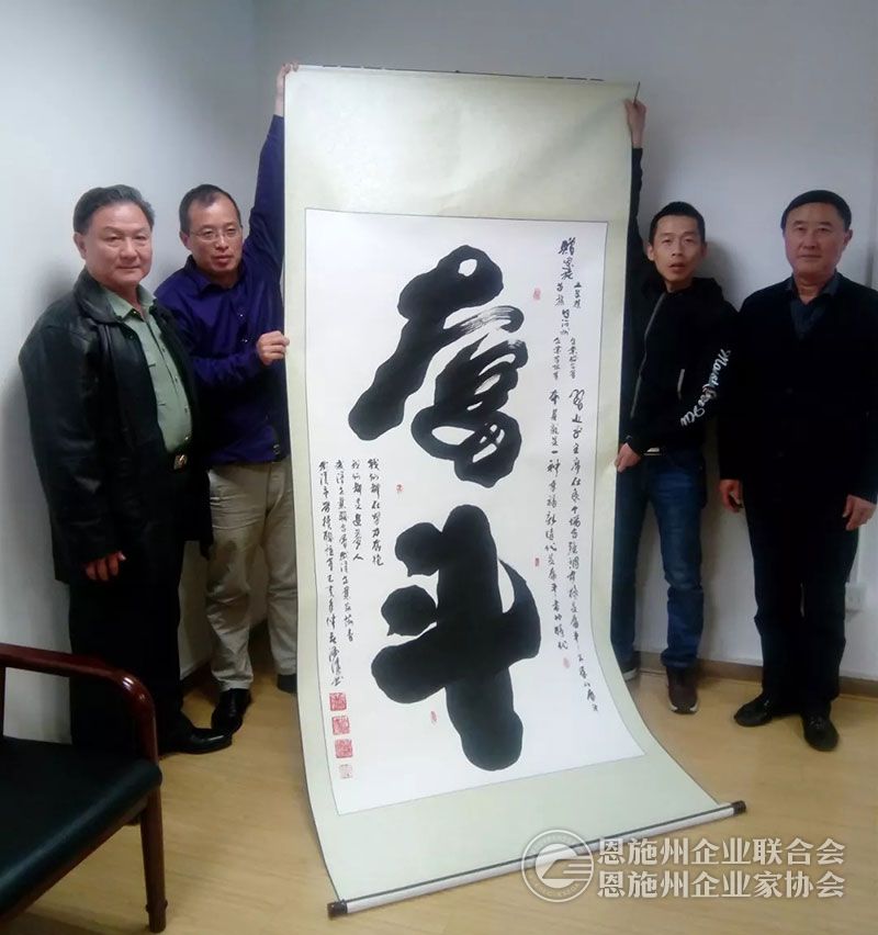 武汉企联向恩施州企联赠送内容为“奋斗”的书法作品
