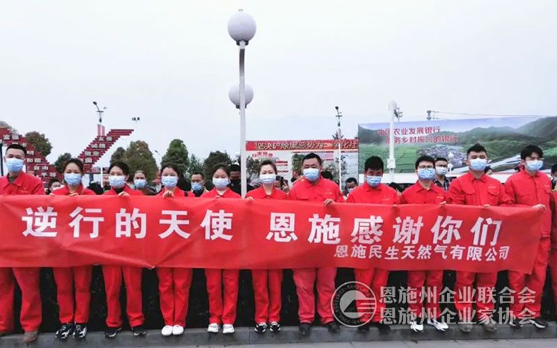 防控疫情,民生人在行动。恩施市是恩施州抗击新冠肺炎疫情的重点地区。恩施民生公司将城区6家医院和一处隔离区作为保供的重点区域,制定预案,落实专人,每天定期巡视,切实消除安全隐患,确保持续稳定供气。2月16日,宣恩民生天然气公司接到宣恩县康复医院因抗击疫情急需开通天然气的诉求后,立即安排安装人员加班加点,昼夜施工铺设安装天然气管道。仅仅用了5天时间,宣恩康复医院就实现了通气,及时保证了该医院疫情防控工作的开展。3月24日,天津援恩医疗队乘飞机离开恩施。当日,恩施城区数万人夹道欢送。恩施民生天然气公司的12名员工获得了到机场送行的殊荣,他们打出了“逆行的天使,恩施感谢你们”的横幅。其实,抗击疫情期间,恩施州的民生人用自己的奉献和付出进一步诠释了“逆行的天使”的含义。