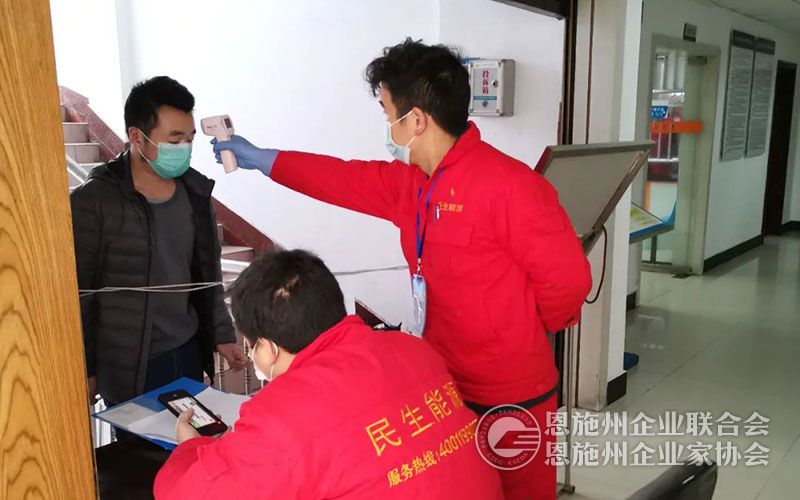 保员工安全,也要保用户安全。为全力做好疫情防控工作,本着对员工负责、对用户负责、对社会负责的态度,恩施民生公司协调多方力量紧急筹措酒精、消毒液、口罩等防疫物资储备到位,对办公区域、门站、员工食堂等重点区域进行全面消毒,并及时向一线员工发放防护用品。每天对公共区域进行多次消毒,不留死角。对值班人员和每一位来公司缴费的用户进行登记、体温测量和消毒,为用户提供放心的缴费环境,为员工提供安全的工作环境。