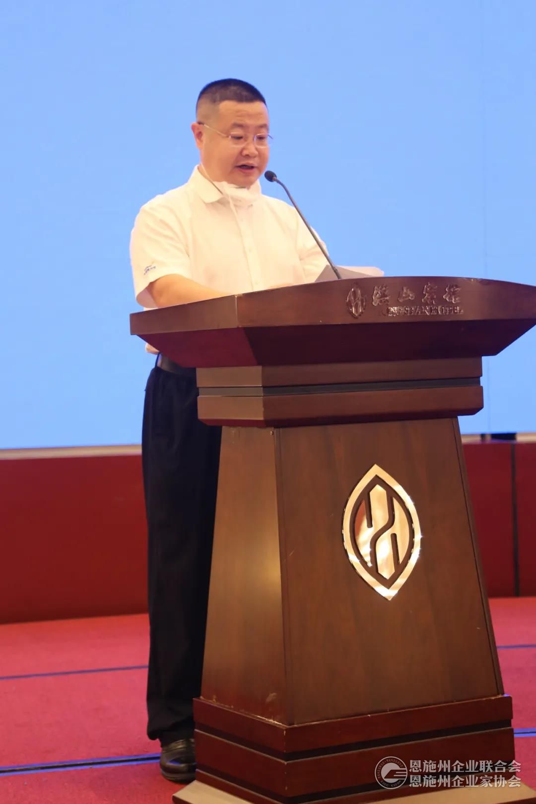 新当选的湖北省企联第十届理事会会长皮亚斌作表态发言。