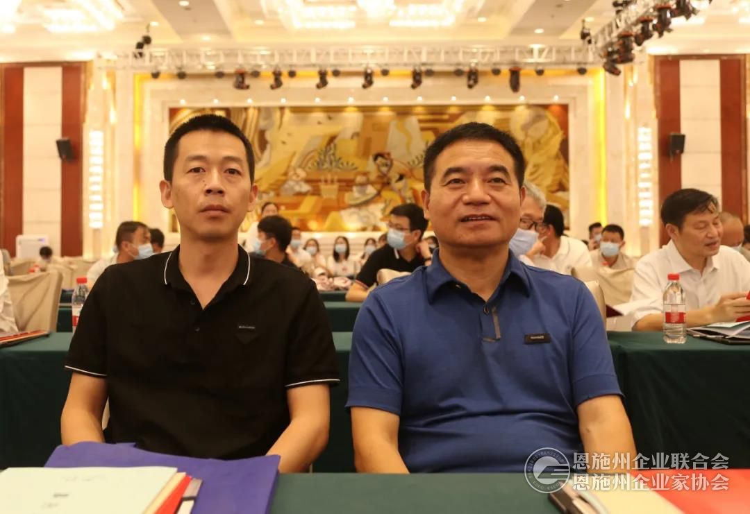 恩施州企联会长谭隆泽(右)、秘书长刘力(左)参加会议。