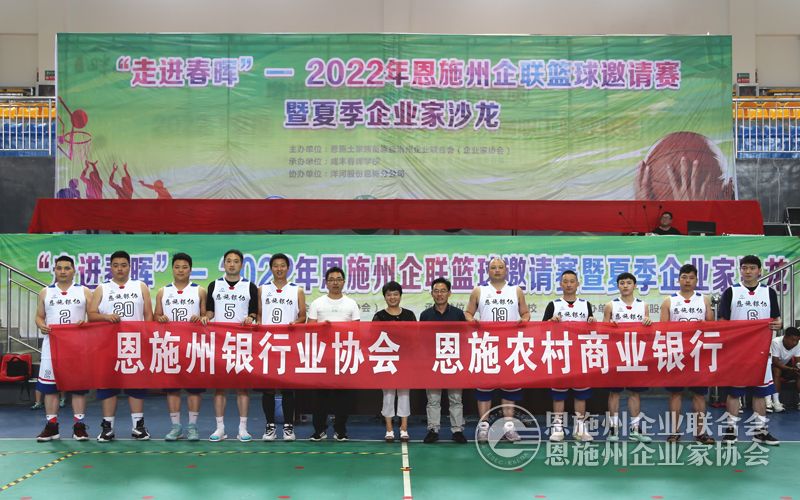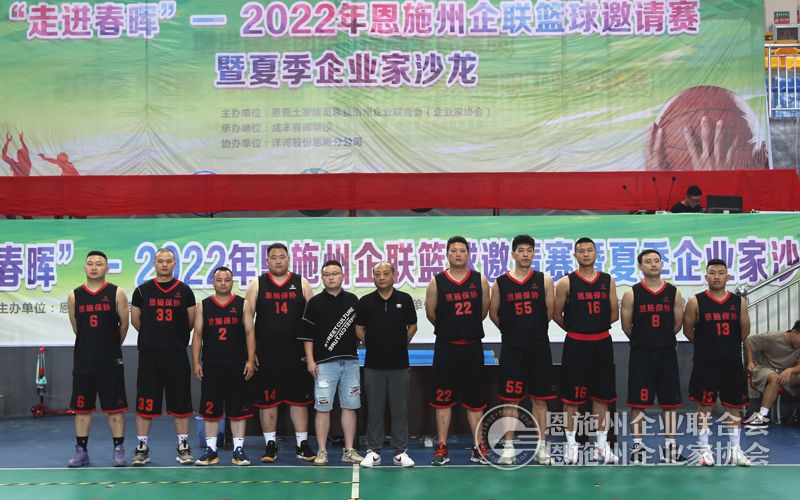 参加“走进春晖”——恩施州企联2022年夏季篮球邀请赛的咸丰春晖学校代表队、恩施州银行业协会代表队、恩施州保险行业协会代表队、恩施自治州翔宇建设工程有限公司代表队。