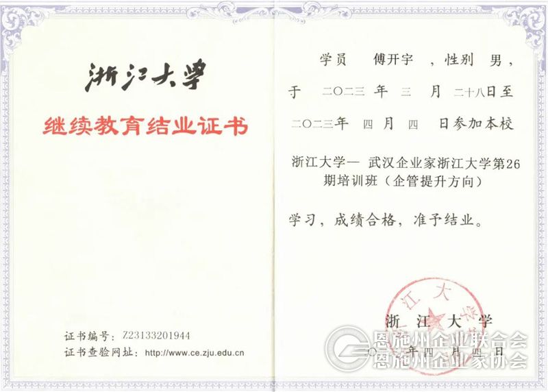 3月28日至4月4日,我有幸作为恩施州企联的工作人员,与恩施州企联选送的五位恩施州优秀企业家:刘腊元、周和俊、王少龙、邓建华、郭中俊一起,全程参与了在浙江大学西溪校区举办的武汉企业家浙江大学第26期(企管提升方向)培训班。聆听了林桦、程晓明、杨遴杰、冯柏忠、楼健人、周荣、鲁柏祥、任鑫苗、李林春等九位专家的授课;到阿里巴巴总部开展了一天的实地学习;与众多来自武汉的企业家利用课间休息和晚餐时间进行了深入交流。就个人而言,8天高强度的培训,收获了满满的干货,在如何提高学习力、改善认知模式、增强大局观等方面进行了一次难得的“充电”;就恩施州企业发展思路而言,坚定了必须走以数字化转型为导向的专精特新发展之路的信心;就企联自身发展而言,深感企联组织必须不断提升自己的影响力和执行力,为会员单位提供更加精准的服务。