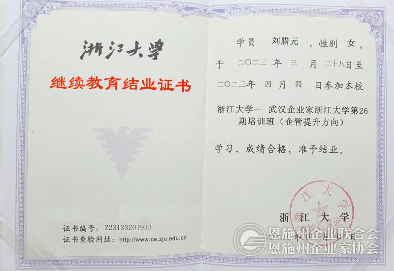 烟雨西湖,美丽杭州,相聚浙大,共成长,同进步。2023年3月28日至4月4日,在恩施州企联的推荐下,有幸参加由武汉市经信局主办,武企联/武企协承办的武汉企业家浙江大学第26期培训班。通过在浙江大学西溪校区为期8天9门高端课程的学习,对准确把握当前宏观形势,找准企业发展方向,走“专精特新”发展之路推动企业发展,获得了最宝贵的资讯、最前沿的知识。紧凑而充实的课程和时间安排,让我们重回到学生时代,追寻学习的本真和初心。