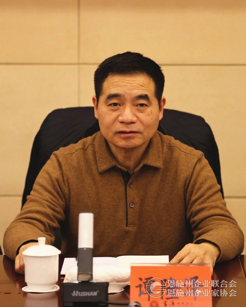 恩施州企联会长谭隆泽在学习贯彻党的二十大精神暨三届一次理事会上作工作报告。