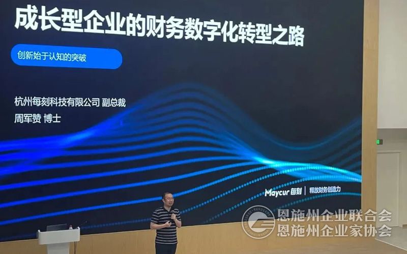 7月5日下午,参访了长三角(杭州)制造业数字化能力中心。浙江大学计算机系博士、现任杭州每刻科技有限公司联合创始人周赞军博士作了《成长型企业的财务数字化转型》的讲座。