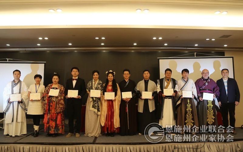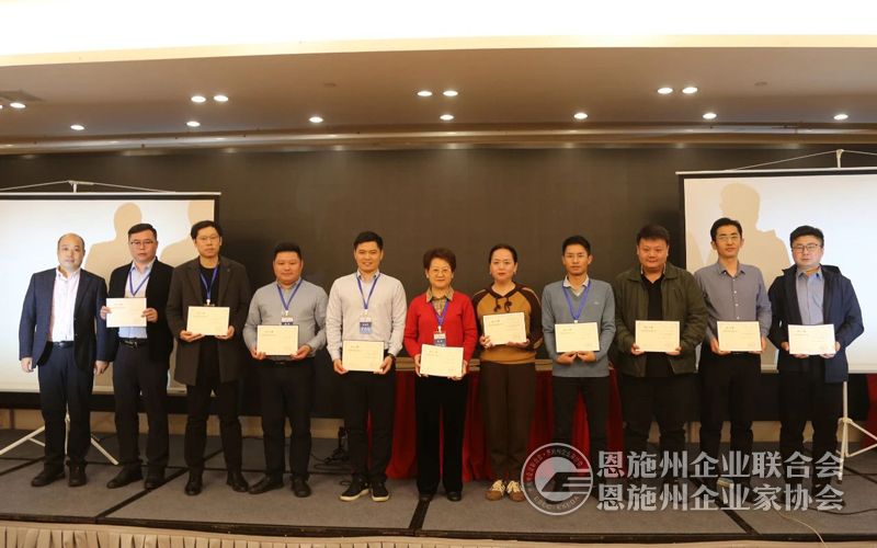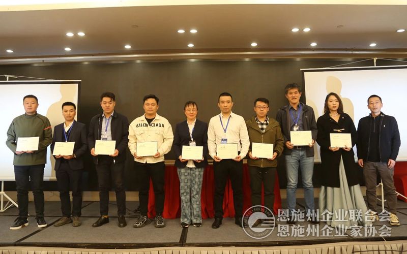 恩施州企联秘书长刘力(右一)为参训学员颁发结业证书