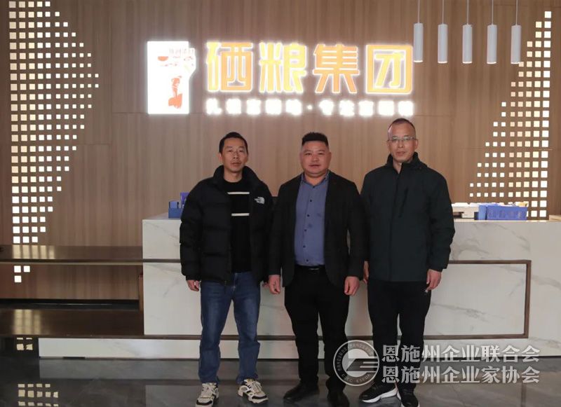 左起:恩施州企联秘书长刘力、湖北硒粮科技集团有限公司副总经理唐凯、恩施州企联副秘书长兼办公室主任傅开宇。