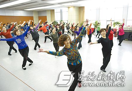 3月11日,州城市民正在州文化馆舞蹈培训厅跳舞。州文化馆自去年8月搬至州文化中心后,近8000平方米功能齐全的新场馆全天候免费向市民开放,以满足市民的精神文化需求。