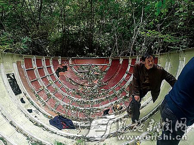 在恩施市沐抚办事处境内发现的疑似火箭整流罩残骸。通讯员 唐登清 摄