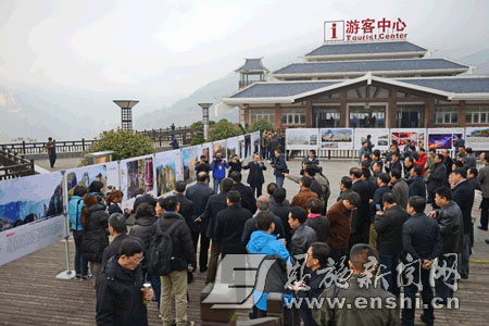 参加会议的嘉宾在恩施大峡谷游客中心了解景区概况。(记者 梅珂 摄)