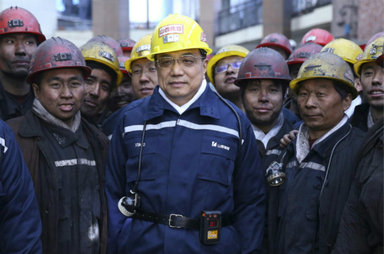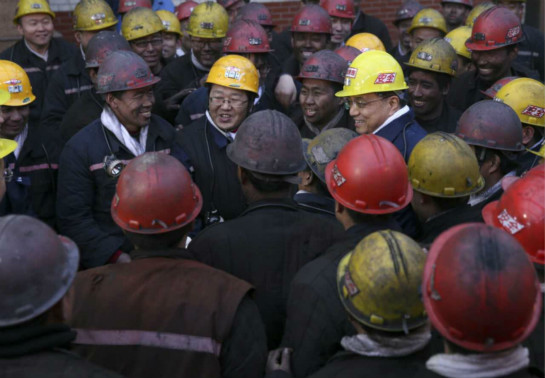 李克强总理5日来到山西焦煤集团官地矿,下井前遇到刚出井的矿工。在满脸黝黑的矿工人丛中,总理紧紧握着他们的手说:“你们自己常年在黑暗的井下工作,却照亮了他人。有人说你们是煤黑子,我说你们是煤亮子。煤炭工人不仅是山西的脊梁,也是国家的脊梁。”