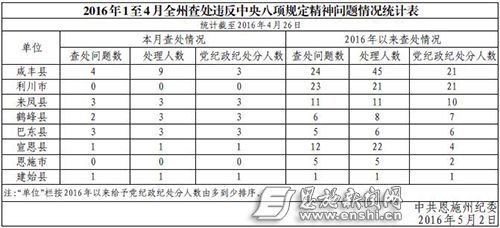 截至4月底,我州纪检监察机关共受理信访举报685件,同比下降31.26%;初核反映党员干部问题线索644件,同比上升84.53%;立案362件,同比上升13.48%;结案208件,同比上升13.7%。谈话函询125人,轻处分122人,重处分26人,开除党籍15人,两规11人,移送司法14人,查处县处级干部10人、乡科级干部45人。