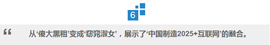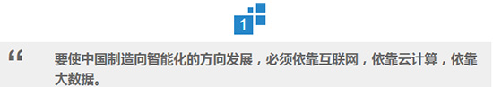 在今年6月的夏季达沃斯论坛上,李克强总理在会见企业家代表时说,中国制造2025和“互联网+”是不可分割的,这是因为我们要推动中国制造升级,必须向智能化的方向发展。而要使中国制造向智能化的方向发展,必须依靠互联网,依靠云计算,依靠大数据,这样才能使中国200多项产量占世界第一的工业产品能够跃上新的水平。