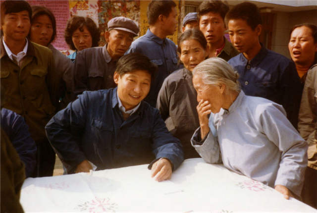 1983年,时任河北正定县委书记的习近平(前排居中),临时在大街上摆桌子听取老百姓意见。新华社发