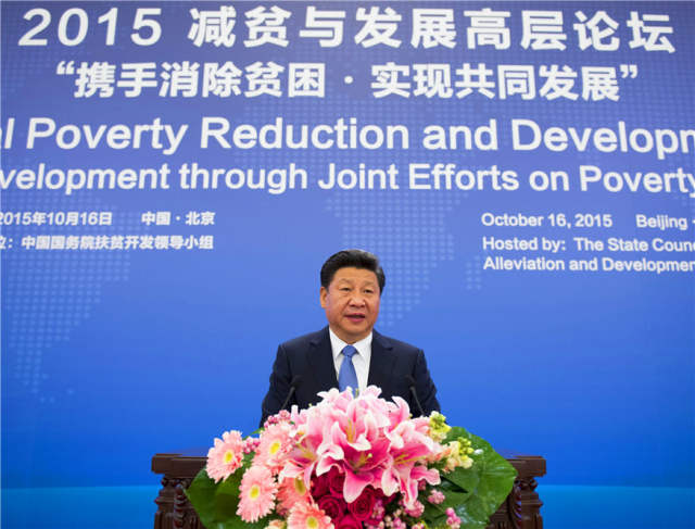 2015年10月16日,2015减贫与发展高层论坛在北京人民大会堂举行。习近平出席论坛并发表主旨演讲。新华社记者李学仁摄