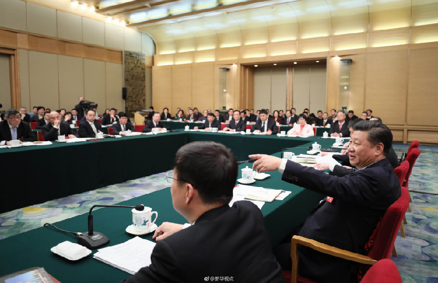 3月5日下午,中共中央总书记、国家主席、中央军委主席习近平来到他所在的十二届全国人大五次会议上海代表团参加审议