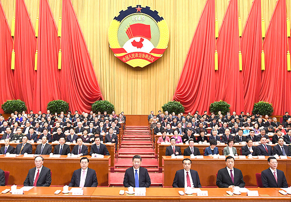 新华社北京3月13日电 汇聚磅礴力量,共襄复兴伟业。中国人民政治协商会议第十二届全国委员会第五次会议圆满完成各项议程,13日上午在人民大会堂闭幕。会议号召,人民政协各级组织、各参加单位和政协委员,更加紧密地团结在以习近平同志为核心的中共中央周围,高举中国特色社会主义伟大旗帜,不忘合作初心、继续携手前进,开拓创新、奋发有为,以优异成绩迎接中共十九大胜利召开,为实现“两个一百年”宏伟目标、实现中华民族伟大复兴的中国梦而努力奋斗。
