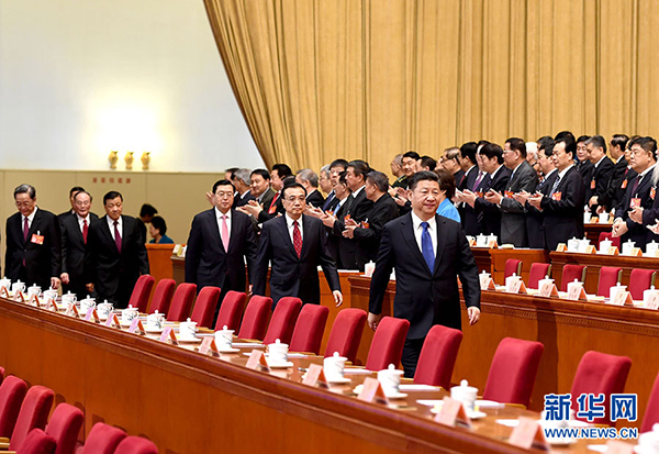 3月13日,中国人民政治协商会议第十二届全国委员会第五次会议在北京闭幕。这是习近平、李克强、张德江、俞正声、刘云山、王岐山、张高丽等步入主席台。新华社记者李学仁 摄