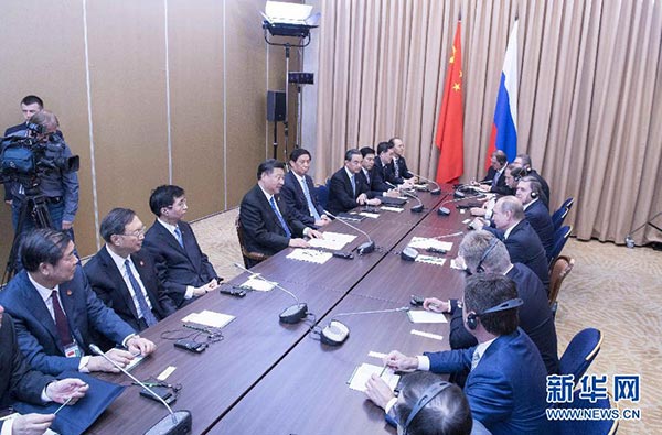 习近平指出,不久前,我同普京总统在“一带一路”国际合作高峰论坛期间举行会晤,达成保持中俄全面战略协作伙伴关系高水平运行、加强两国全方位合作的重要共识。在当前复杂多变的国际形势下,中俄关系发展得好,对中俄各自发展振兴、对世界和平稳定都至关重要。双方要加大在涉及彼此核心利益问题上的相互支持,推动“一带一路”建设同欧亚经济联盟对接取得更多实际成果,深化人文交流和民心相通,密切在国际和地区事务中的协调和配合。
