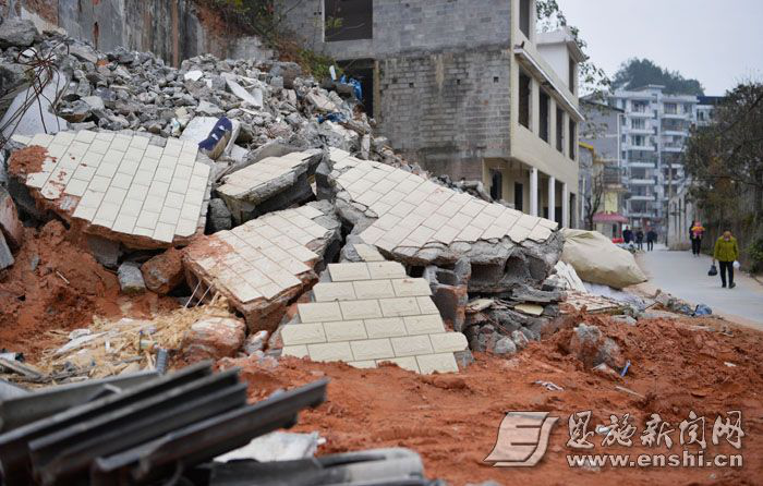这是11月27日拍摄的恩施市沙湾片区拆后的楼房废墟。(记者杨顺丕摄)