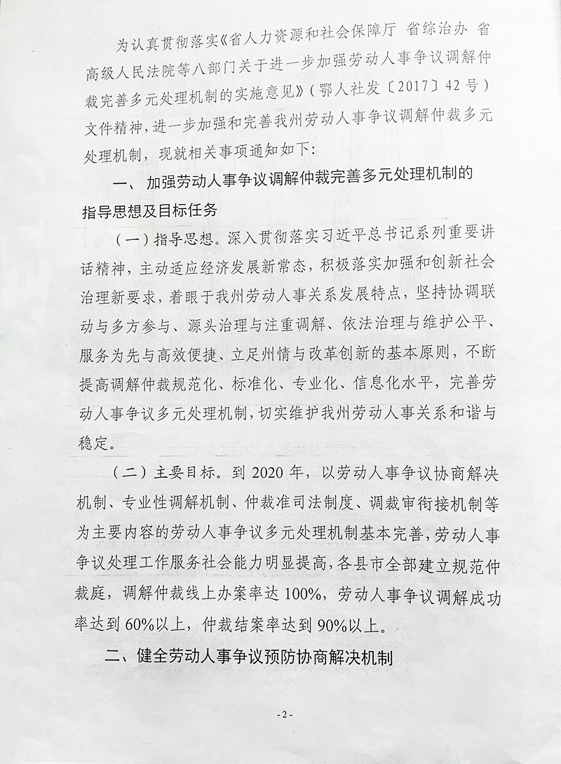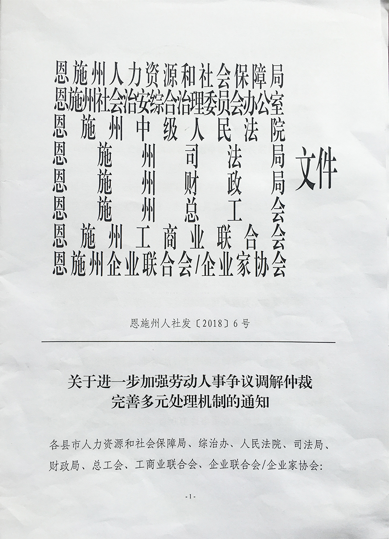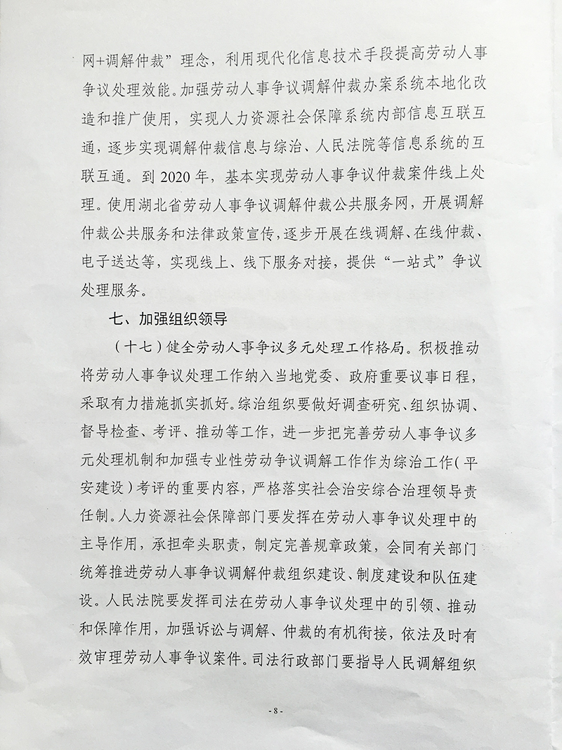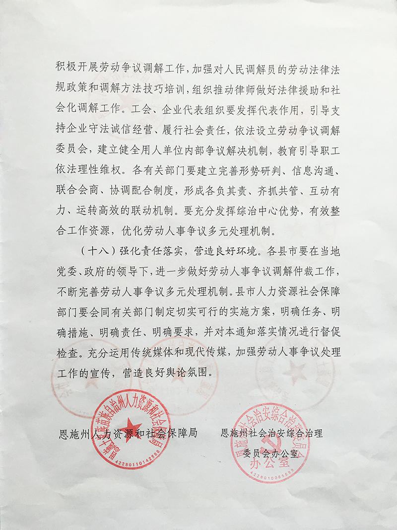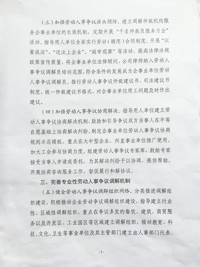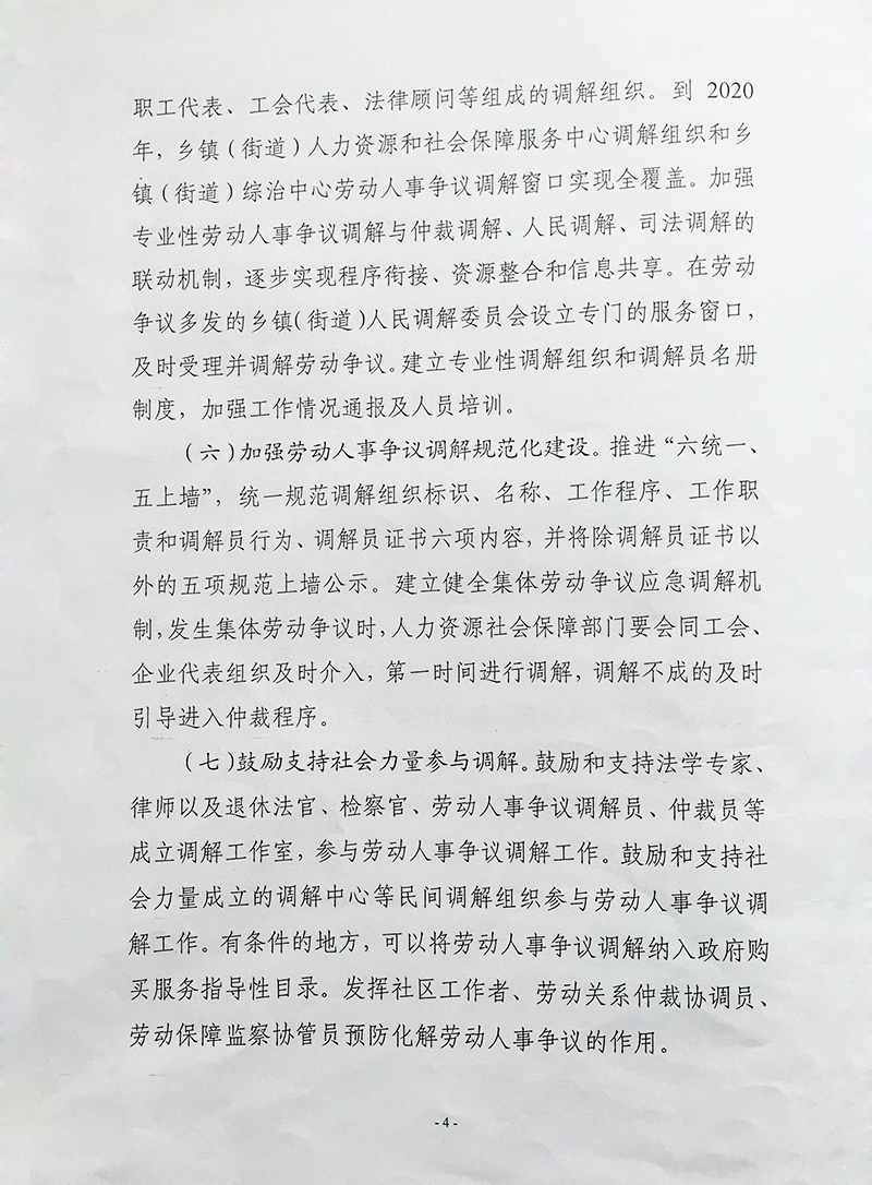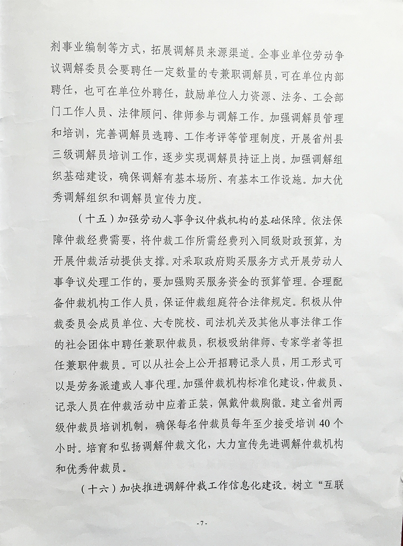 关于进一步加强劳动人事争议调解仲裁 完善多元处理机制的通知