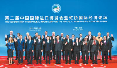 开幕式前,习近平同外方领导人集体合影,并亲切会见世界500强企业家代表、出席“70年中国发展与人类命运共同体”论坛外方智库媒体代表、出席世贸组织小型部长会议外方部长和代表团团长。