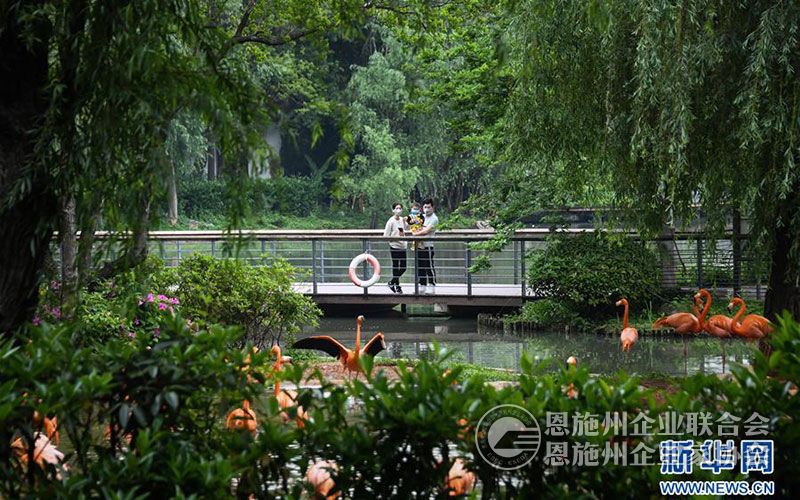 游客在武汉动物园观看火烈鸟(4月22日摄)。 新华社记者 程敏 摄