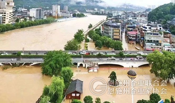 7月15日以来的持续强降雨,使恩施城区遭遇50年一遇的特大洪水,城区淹没面积达11平方公里,近5万户居民停电停水,4000多户居民、2000多户商户不同程度受灾,损失近9亿元。