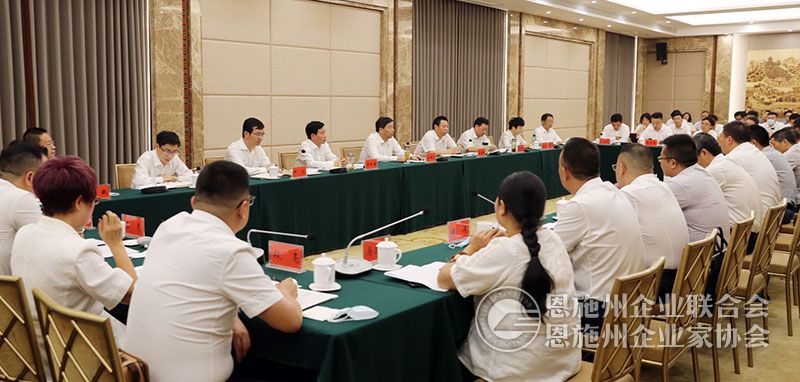 7月5日,恩施州民营企业家代表和异地商会会长座谈会召开,深入学习贯彻习近平总书记关于促进民营经济高质量发展的重要讲话和重要指示精神,听取民营企业家代表和异地商会会长代表对恩施经济社会发展的真知灼见,研究解决当前企业发展和商会建设中存在的突出困难和问题,共谋恩施“十四五”高质量发展大局。州委书记胡超文出席会议并讲话。