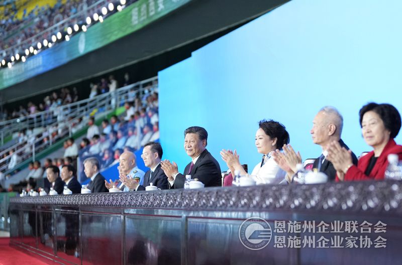 19时58分,在欢快的乐曲声中,习近平和夫人彭丽媛等走上主席台,向观众挥手致意。全场响起长时间热烈的掌声。