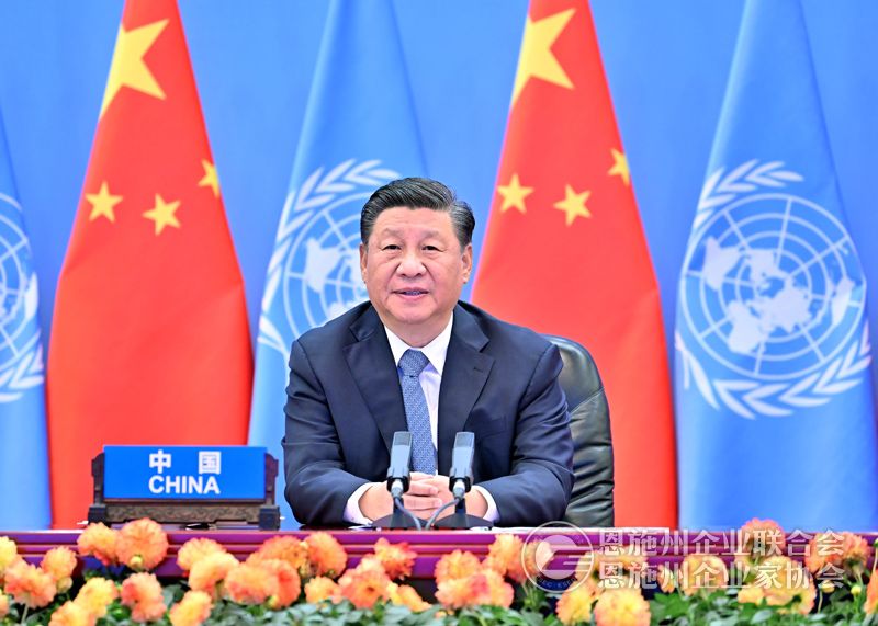 10月14日晚,国家主席习近平以视频方式出席第二届联合国全球可持续交通大会开幕式并发表题为《与世界相交 与时代相通 在可持续发展道路上阔步前行》的主旨讲话。新华社记者 殷博古 摄