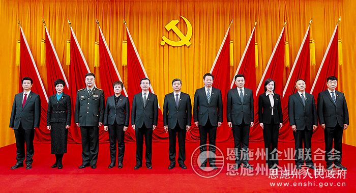 12月9日,在中共恩施州委八届一次全体会议上当选的新一届州委常委。从左至右依次为刘智勇、向红林、龚鸿斌、张远梅、尹达、胡超文、夏锡璠、吕星、张淼、田金培、单艳平。