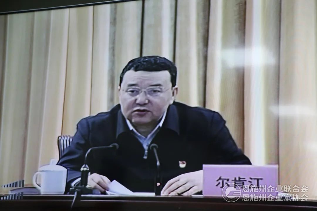 恩施州企联会长谭隆泽在恩施州分会场参会。
