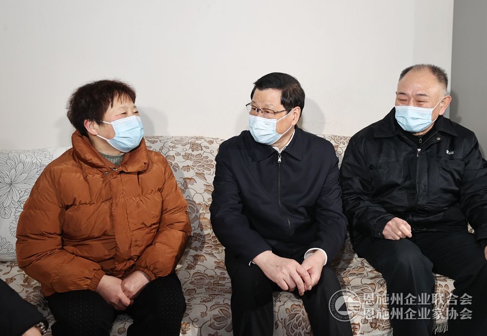 应勇来到武汉市青山区工人村街道青宜居社区青宜居小区党员刘桂华家中,同刘桂华夫妇促膝而坐,亲切拉家常。