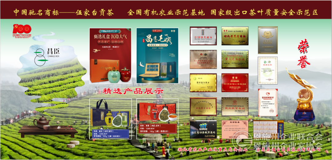 昌臣茶业公司积极服务和融入新发展格局,瞄准国际和国内两个市场,对标欧盟和有机茶标准,将好茶打造成好产品,让好产品成为好品牌。一是建设有机茶基地。依托伍家台村良好的生态优势,昌臣茶业公司把发展有机茶作为重中之重,以欧盟出口认证为标准,严控茶叶农残和重金属指标,建立茶叶溯源体系,切实提升茶叶质量,增强市场竞争力,先后通过国内中绿华夏有机茶认证、欧盟有机产品认证、美国雨林联盟认证、国际公平贸易认证等重量级认证标准。目前,茶叶出口到欧盟和摩洛哥等10多个国家和地区,年出口量2800余吨,出口创汇超过1000万美元,稳居恩施州第一。疫情期间,昌臣茶业公司仍实现了稳定出口欧洲800万美元的目标,极大保护了茶农的利益。二是擦亮贡茶品牌力。昌臣茶业公司成立全县首个茶产业人才工作室,围绕伍家台贡茶重要品种,开展相关工艺研究和手工传承设备开发,推动产业提档升级。积极选送伍家台贡茶参加有机食品博览会、硒茶博览会、农博会等各种茶业赛事及产品推介会,伍家台贡茶入选第二批中欧地理标志保护名录,相继获得国家地理标志产品、中国驰名商标、湖北省地理标志大会金奖等荣誉,伍家台贡茶品牌影响力不断提升。昌臣牌伍家台贡茶旗舰店先后入驻京东、天猫网销平台,在北京、上海、广州、武汉、浙江等地开设直营店,年销售额达3000万元以上。
