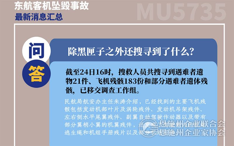 3月24日,“3·21”东航MU5735航空器飞行事故国家应急处置指挥部第四场新闻发布会在广西梧州召开,一系列公众关心的问题有了最新回应。为你整理了最新的的十问十答,速览。