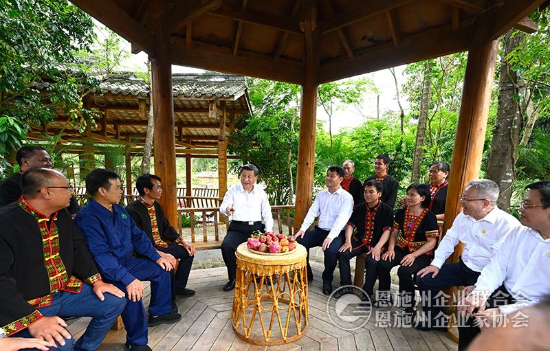 4月10日至13日,中共中央总书记、国家主席、中央军委主席习近平在海南考察。这是11日下午,习近平在五指山市水满乡毛纳村同村民们亲切交流。新华社记者 李学仁 摄