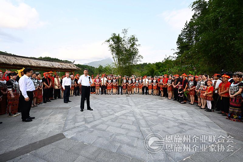 习近平沿长廊察看黎族特色农产品和黎锦、藤编等非物质文化遗产展示。广场上,歌声悠扬、鼓乐齐奏,村民们跳起竹竿舞迎接远方的客人。习近平亲切地对大家说,很高兴来看望黎族乡亲们,看到你们过上幸福生活,我感到很欣慰。我们全面建成小康社会以后,还要继续奔向全体人民共同富裕,建设社会主义现代化国家。乡村振兴要在产业生态化和生态产业化上下功夫,继续做强做大有机农产品生产、乡村旅游、休闲农业等产业,搞好非物质文化遗产传承,推动巩固拓展脱贫攻坚成果同乡村全面振兴有效衔接。各级领导干部要贯彻党的群众路线,牢记党的根本宗旨,想群众之所想,急群众之所急,把所有精力都用在让老百姓过好日子上。