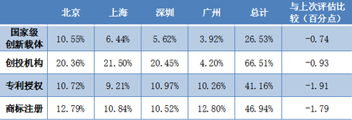 表2 一线城市拥有创新资源数量在参评城市中占比情况