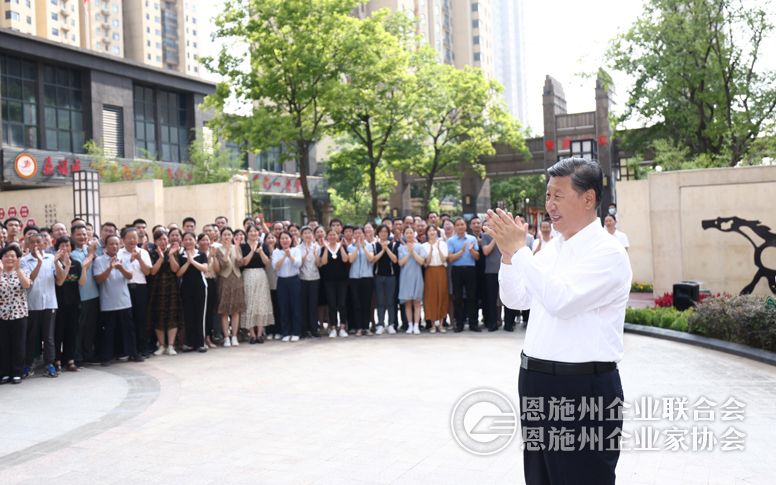 6月28日,中共中央总书记、国家主席、中央军委主席习近平在湖北省武汉市考察。这是28日下午,习近平在东湖高新区左岭街道智苑社区广场同干部群众亲切交流。(新华社发)